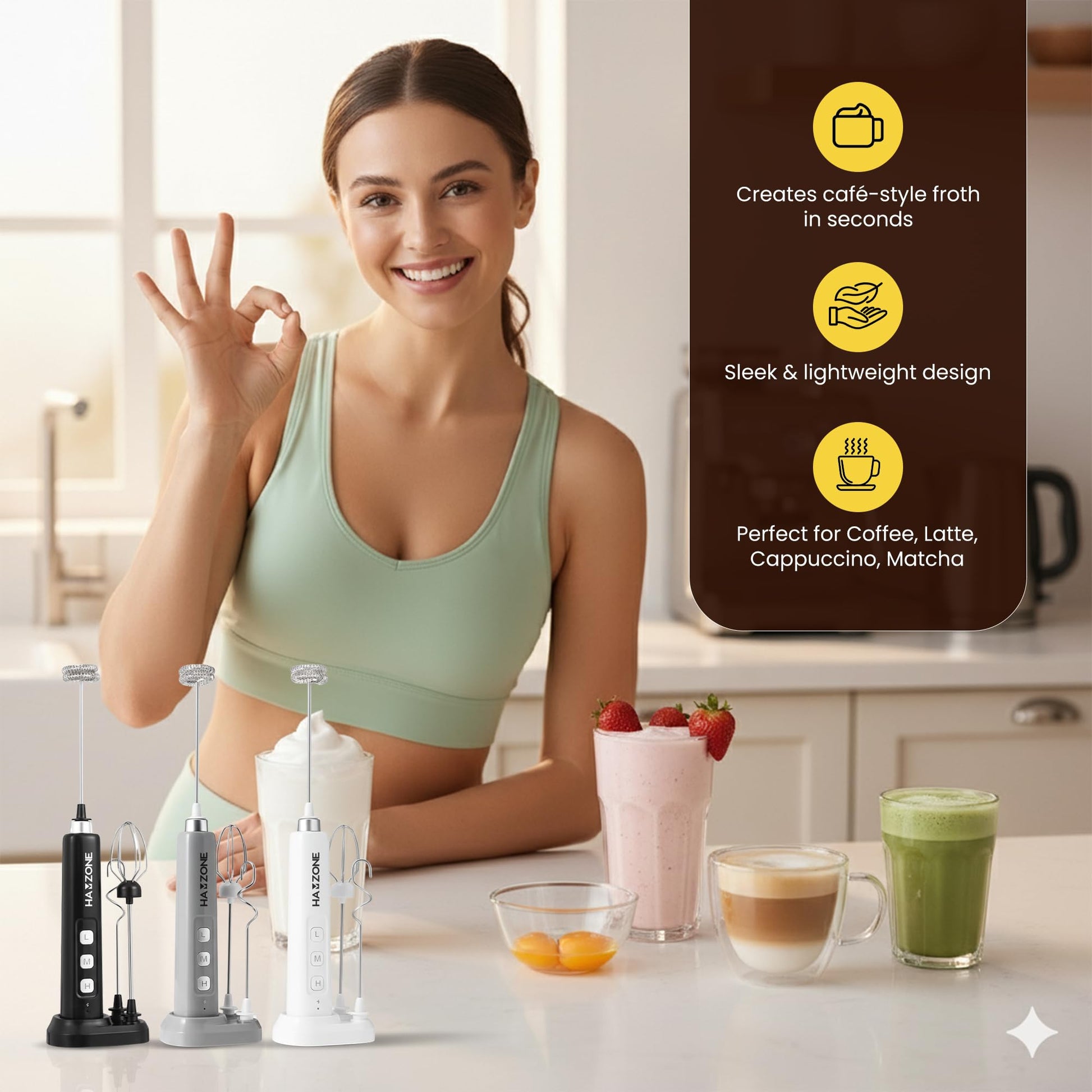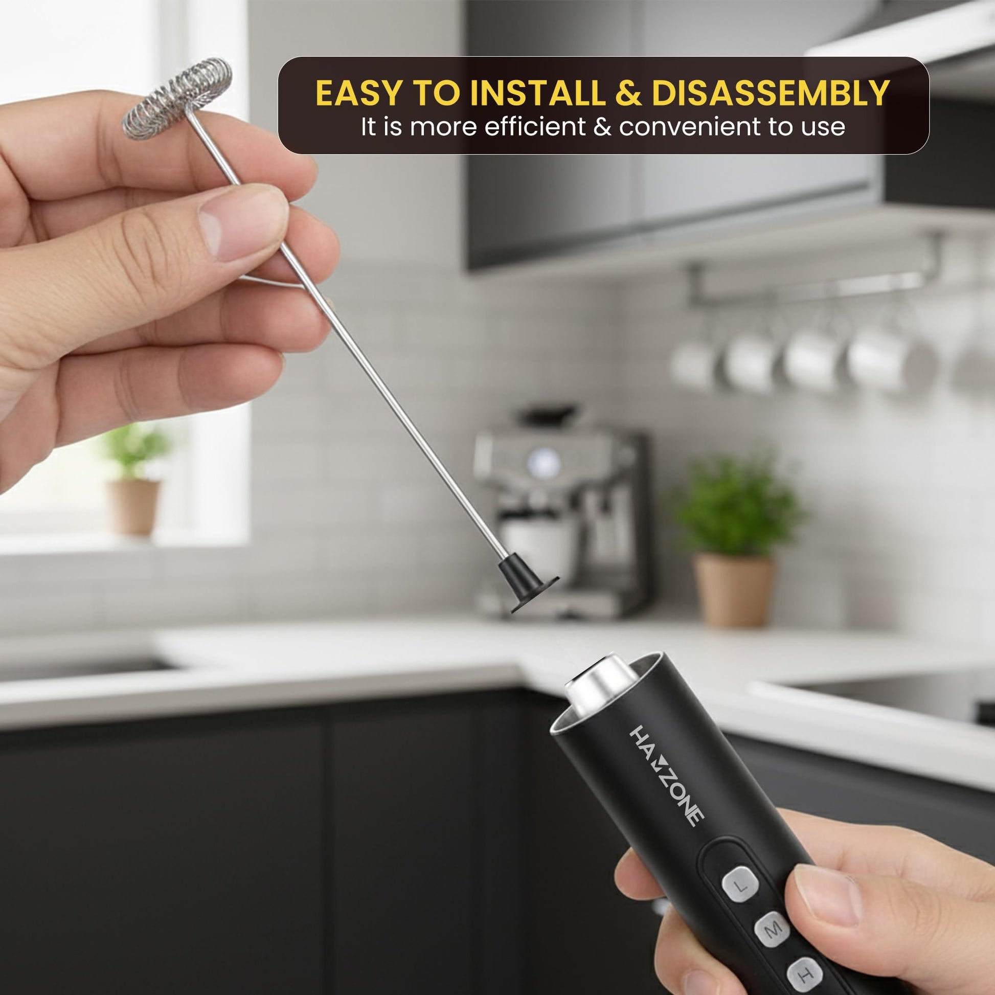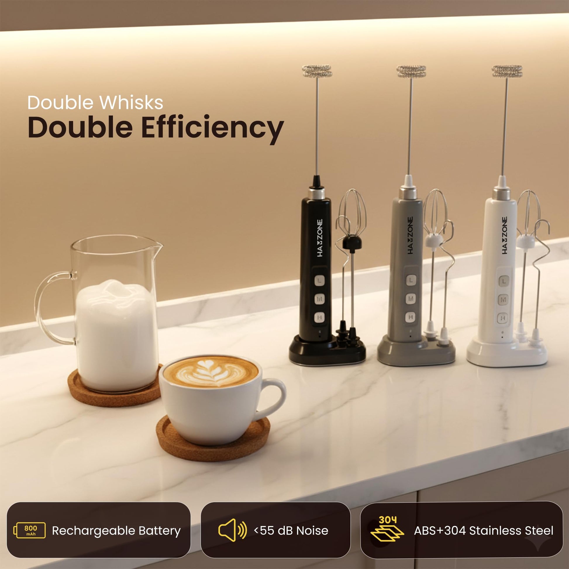 Hamzone Rechargeable Milk Frother Handheld, Electric Coffee Frother Mini Whisk with Stand, Stainless Steel Foam Maker for Cappuccino, Lattes, Matcha & Hot Chocolate