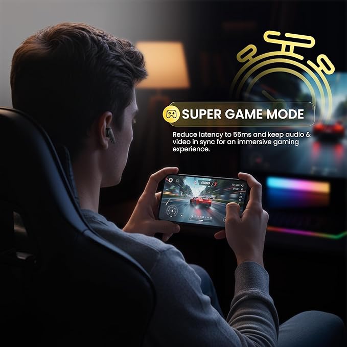 Wireless Bluetooth Earbuds I Quad Mic ENC, 40H Playtime, Type C Fast Charging I Earphones for Calls, Movies & Gaming with 55ms Low Latency I Deep Bass, Clear Quality with Noise Cancellation